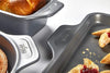 Oversized handles allow for safe, easy grip even while wearing oven mitts for safe transfer in and out of the oven.
