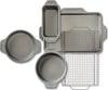 Bake striking layer cakes, decadent breads, and perfect pinwheels with this 5-Piece set. Essential pieces for the passionate baker, this set includes a half sheet pan with a perfectly fitted Nonstick Cooling & Baking Rack, two Round Cake Pans, and a 1-lb. Loaf Pan.