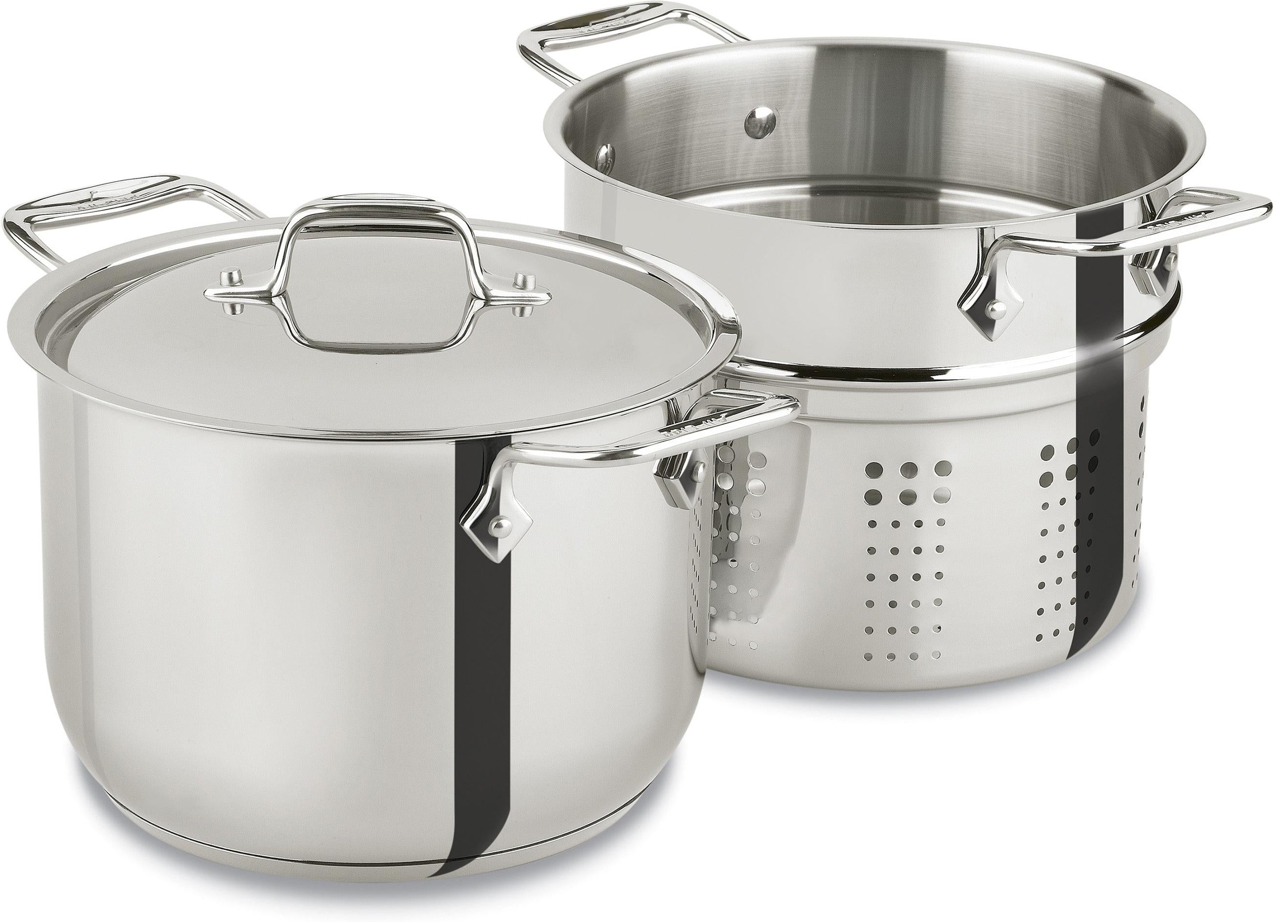 Whether it's for family spaghetti night or a romantic fettuccine Alfredo dinner for two, the All-Clad 6-Quart Pasta Pot is ideal for preparing pasta. The large capacity gives noodles room to boil, and the 4-quart insert allows you to drain excess liquid without the need for a strainer. Durable stainless steel construction provides even heating, and the polished finish lasts even when placed in the dishwasher.