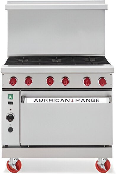 American Range - 36" Stainless Steel Green Flame Ranges 6 Burners with 26.5" Standard Oven - ARGF-6