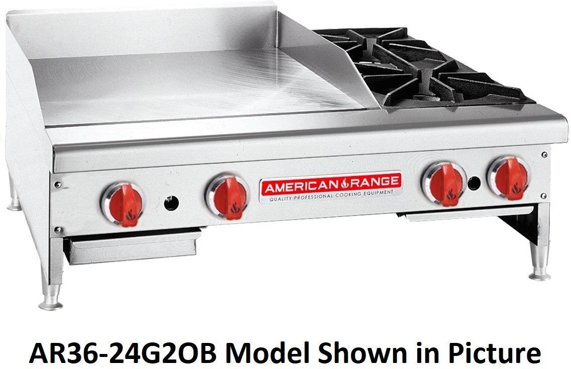 American Range - 48" Stainless Steel Countertop Raised Griddles With 4 Open Burners - AR48-36G2OB