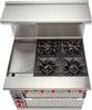 American Range, Green Flame range size 36" x 32-1/2" x 56" Stainless steel front, sides, backriser, shelf and 6" adjustable legs. Removable full width drip pan. 25,000 BTU/hr. Burners with electronic ignition, no standing pilot. Lift-off, no clog burners for easy cleaning. Heavy-duty cast iron grates, 12" x 12". Oven: 35,000 BTU/hr. standard oven, with porcelain interior and inside door panel, oven interior measures 26 1/2"W x 22-1/2"D x 13-1/2"H. Oven thermostat adjusts from 250°F to 500°F. Ovens supplied with two racks, two rack guide sets, and four rack positions. Oven door with a spring assisted, counterweight mechanism requiring no adjustment. Rear gas connection and pressure regulator.