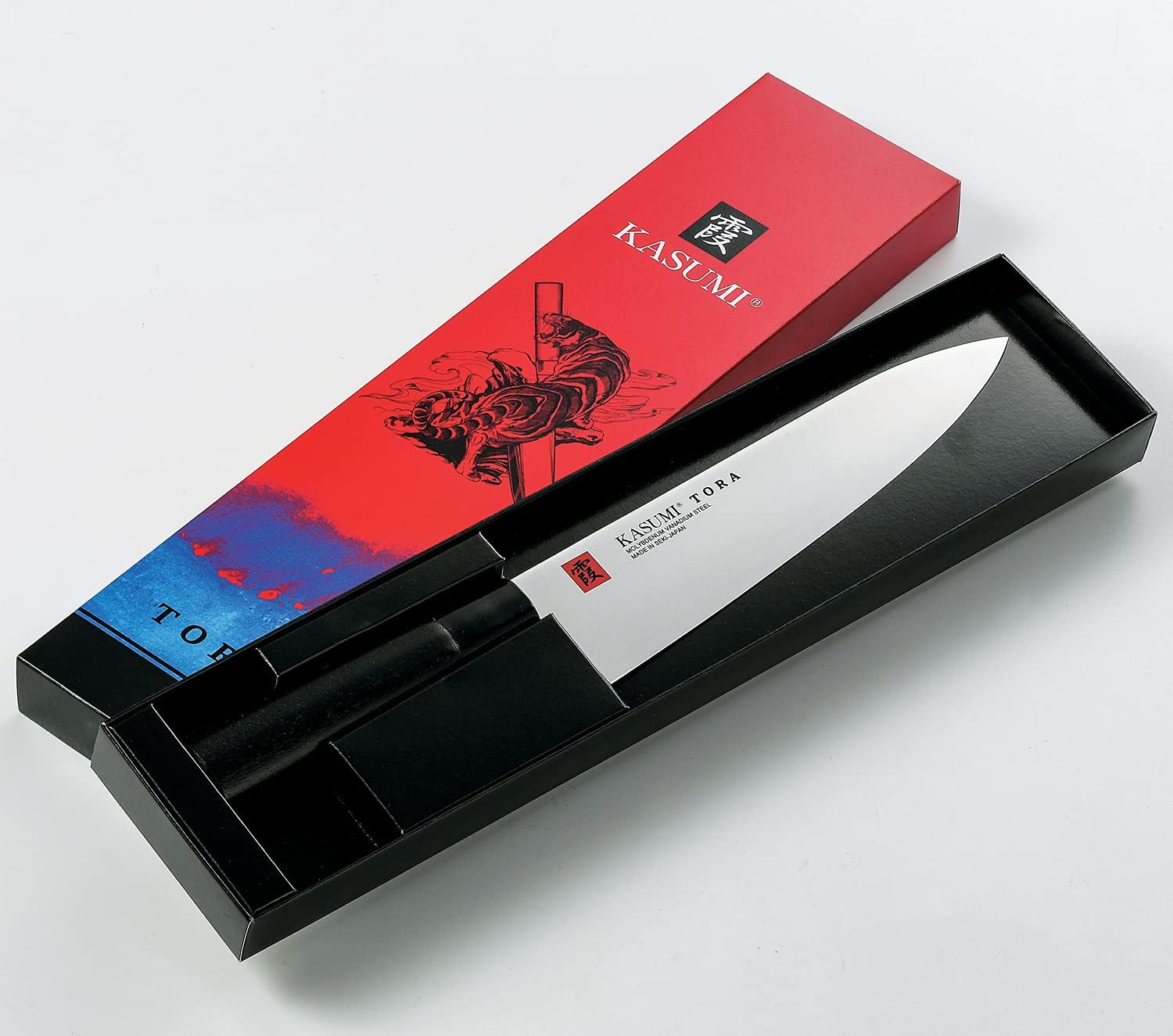 - Traditional Japanese Craftsmanship: Each Kasumi TORA knife is meticulously handcrafted by artisans who employ traditional Japanese techniques reminiscent of sword making. This dedication to craftsmanship ensures that every knife is a work of art.