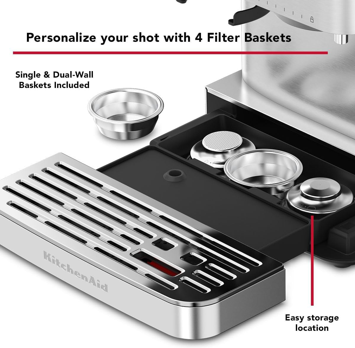 Premium Stainless Steel Construction: The KitchenAid espresso machine is crafted from high-quality stainless steel, ensuring exceptional durability and stability. The robust build not only adds a sophisticated touch to your kitchen but also provides optimal heat retention for consistent brewing temperatures, crucial for extracting the best flavors from your coffee beans.