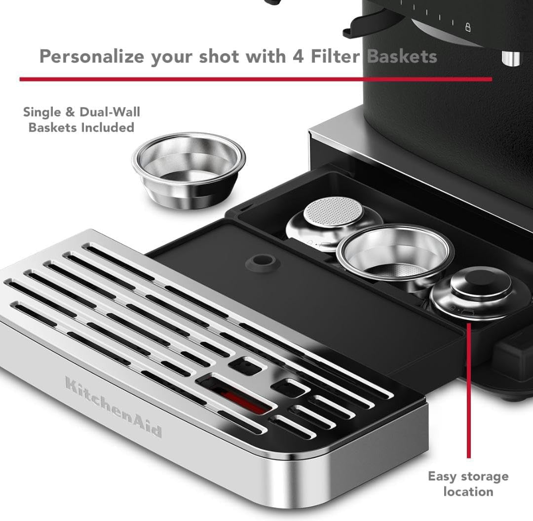 Compact Design: Designed to fit perfectly on your kitchen countertop, the KitchenAid espresso machine boasts a compact footprint without sacrificing functionality. Its sleek design complements any kitchen decor, making it an attractive addition to your coffee station.