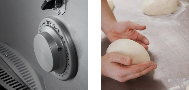 - The Dough Ball Rounder processes each portion 50 times to ensure they come out round and