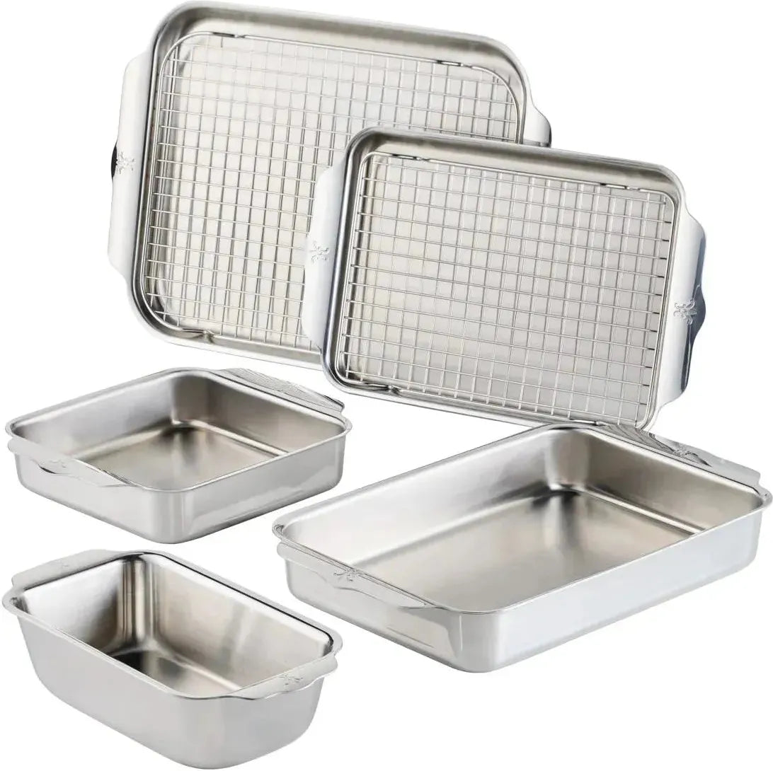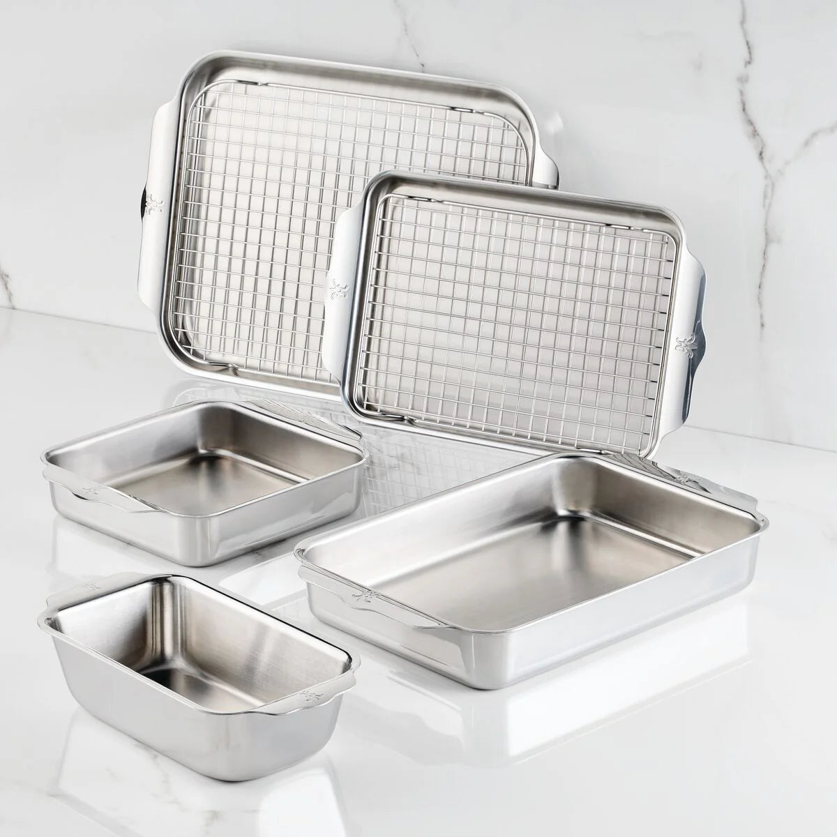 - Tri-Ply Stainless Steel Construction: Each piece is constructed with a responsive aluminum core sandwiched between layers of stainless steel, ensuring even heat distribution for consistent baking results.