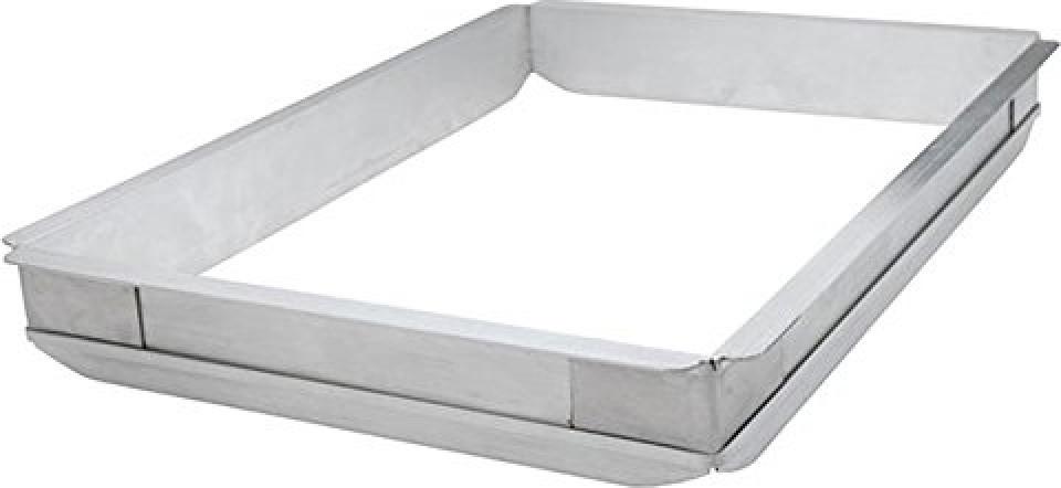 Our aluminum sheet pan extender gives you the advantage to turn your 1/4-size sheet pan into to commercial bake wares. It is designed with flat top edge for easy lifting and handling.