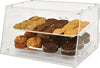 This sturdy acrylic display case provides a clear view of your freshly-baked goods. It features magnetic latching rear doors and a front door that ensures your customers have easy access to your delicious pastries anytime. The trays are removable and the white handles complete the fresh, clean look. It is designed for easy restocking and cleaning. Ideal for cafes, catering companies, concession stands, and more.