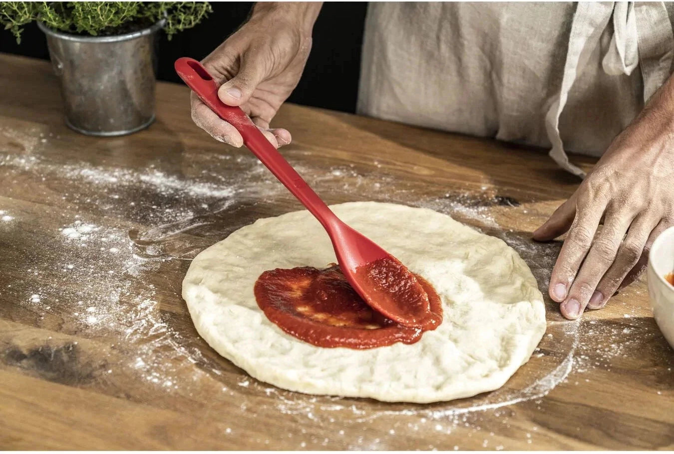 The cooking spoon from the BALLARINI Rosso range is the 'maestro' of cookware with a wide range of talents. Whether you use it for turning, stirring, serving, arranging or simply for tasting during cooking, the useful kitchen gadget is suitable for universal use. The cooking spoon is made from high quality silicone. So your pots and pans will breathe a sigh of relief. The flexible material does not scratch their coating. Because scratches can impair the non stick function of your cookware in the long term. The food safe silicone is also heat resistant up to 230 °C and non slip.