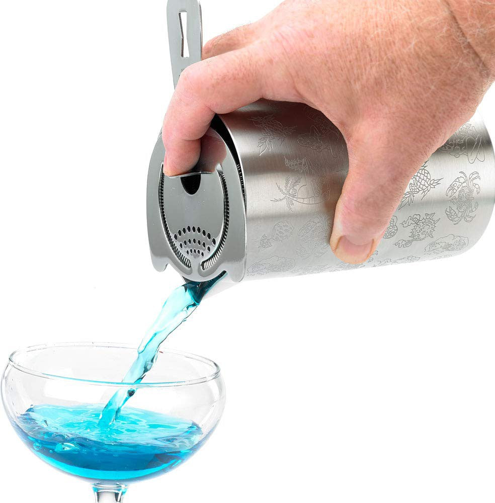 Introducing the Barfly 21 Oz Stainless Steel Tiki Design Double Wall Mixing Tin Set, a must-have accessory for any cocktail enthusiast or professional bartender looking to elevate their mixing game. This set of six mixing tins is not just functional but also adds a fun and tropical vibe to your cocktail preparation. Each mixing tin in this set boasts a spacious 21-ounce capacity, providing ample room for crafting multiple cocktails at once. This feature is particularly beneficial in high-volume settings like busy bars or cocktail parties, allowing for efficient and streamlined drink preparation. Crafted from high-quality stainless steel, these mixing tins are built to last. The double-wall construction not only enhances durability but also provides excellent insulation, keeping your cocktails chilled without causing your hands to freeze. Additionally, the double-wall design prevents condensation from forming on the outer surface, ensuring a firm grip and minimizing mess during use.