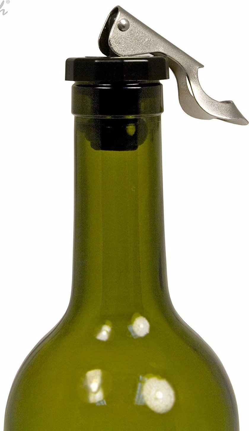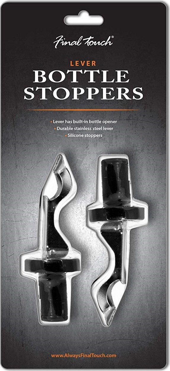 Keep your wine & liquor fresh for longer with these lever bottle stoppers. The lever is made from durable stainless steel and features a convenient bottle opener right on the lever. Pull the lever up, place into the bottle opening & pull the lever down to seal the bottle.