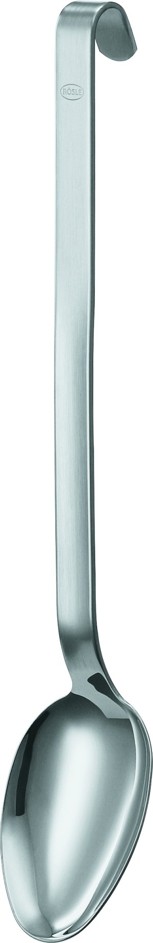 One piece wonders, these Rosle kitchen utensils with hooks are seamless as they are manufactured in one piece and designed to tackle the most demanding kitchen jobs. Set at an ergonomic angle perfect for the task in hand, the handles are molded to fit the shape of the hand with the rounded edges. The transition from highly polished functional part to matte finish handle displays classical style. Perfected with a practical hook for storage in the "open kitchen" system. For basting food in the oven and ladling from flat containers and pans. The long handle protects hands from heat. For right and left handed use.