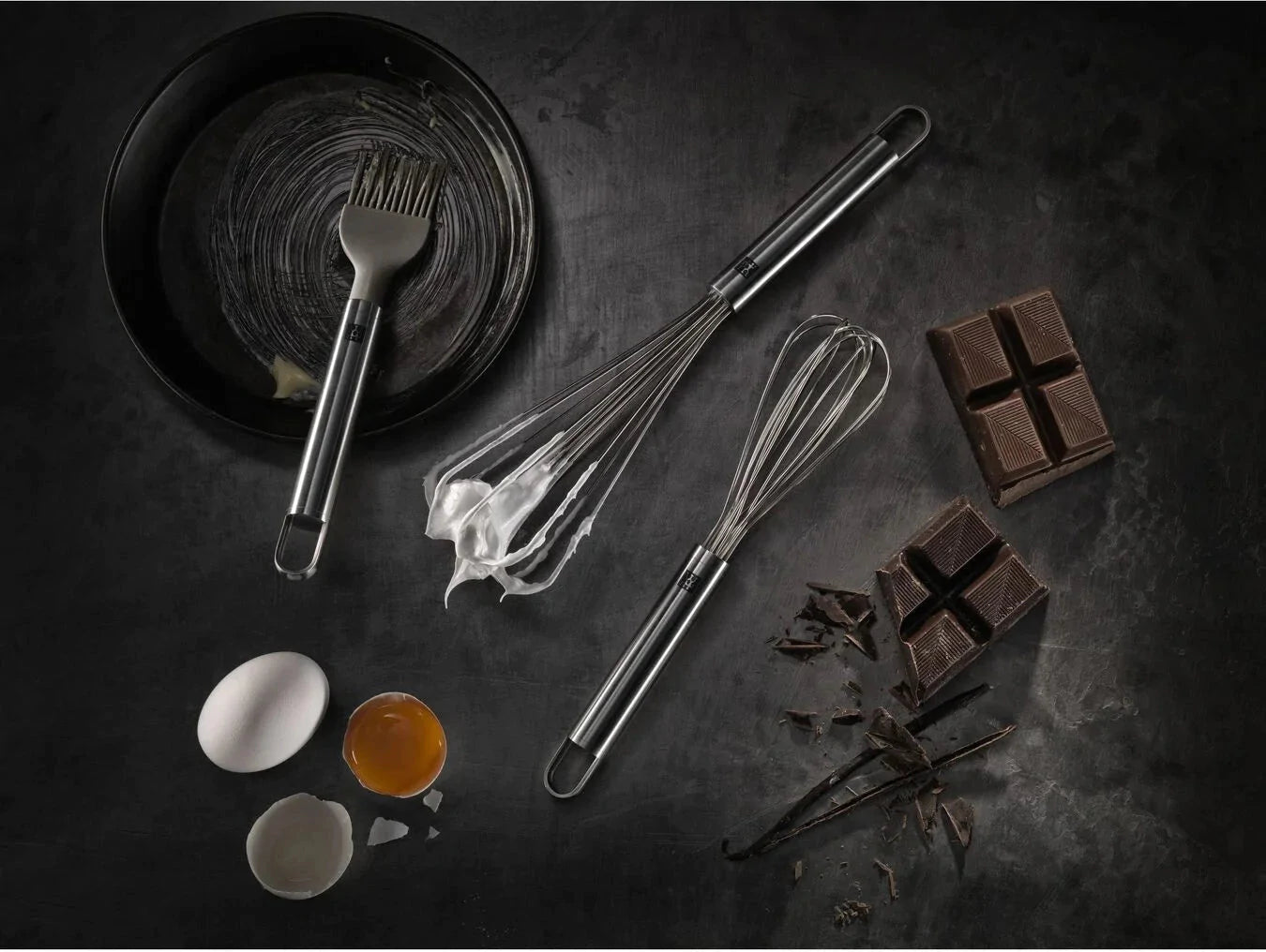 Become a genuine artist in the kitchen with this ZWILLING Pro series pastry brush. The kitchen gadget is indispensable for greasing trays, garnishing pastries, or marinating fish. Because every detail of this baking utensil has been designed for functionality, completing such tasks is particularly simple. The hygienic combination of heat-resistant silicone and stainless steel alone is impressive, but even without this, the pastry brush is a diverse and ergonomically designed gadget. The satin finish handle sits perfectly in the hand to ensure effortless work. The stainless-steel silicone transition is heat resistant and particularly durable. The bristle lengths have been optimized to prevent unwanted splashing. and because they are shaped to a point, the brush reaches any corner. In addition, the silicone is so soft that even brushing coated pots and bowls is no problem with the brush. That uncompromising functionality can also look this good is thanks to the Pro series’ designers Matteo Thun and Antonio Rodriguez, who masterfully combine timeless design with exceptional properties.