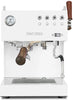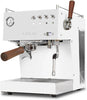 - White/Wood Finish: The machine's White body paired with wood accents offers a sleek, modern look that complements any kitchen or café setup. The wooden handles on the portafilter and steam wand add a touch of elegance and comfort, making it a standout piece in any environment.