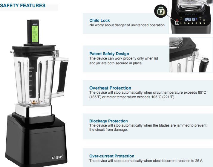 More Powerful PerformanceIt starts quickly with huge force, additionally with load current compensation to ensure constant-speed working (speed won’t decrease due to increase of food volume), so it’s able to crush food in a shorter time to preserve food freshness and able to crush any frozen fruits and ice cubes.