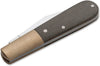 The handy Boker Barlow is a lightweight slip-joint pocket knife that can handle almost all everyday cutting jobs effortlessly. In this version, it is equipped with contoured handle scales made of olive green Canvas Micarta, while the bolsters and liners are made of matt blasted brass. The resulting colour contrast is reminiscent of the privation-laden expeditions of discovery in times long past. The satin-finished blade is made of ice-hardened 440C with 60 HRC and is opened by nail nick. The operating safety of the knife is increased by a 90° stop when opening and closing the blade. The characteristic teardrop shape of the Barlow can be traced back to the English pocket knives of the 17th century, making it certainly one of the oldest models ever. Handmade in the Boker knife manufactory Solingen.