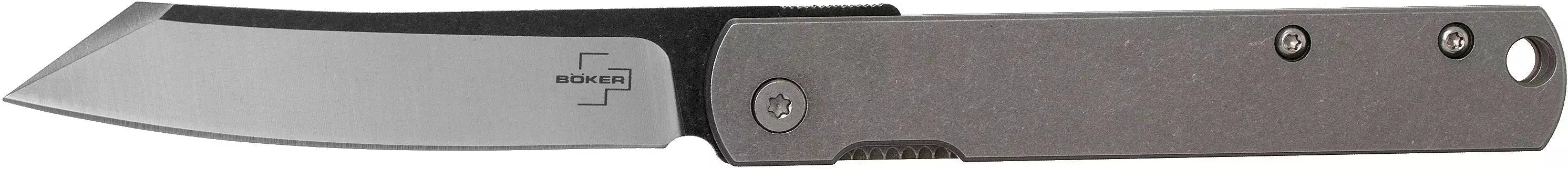The elegant Boker Plus Zenshin is reminiscent of the world-famous Higonokami pocket knives, which have been manufactured in the Japanese town of Miki since 1896. Unlike its historical models, however, the handle body of the gentleman's knife is not made of a single piece of folded metal, but of flat stainless steel handle scales with a matte stonewash finish. The flat design does without additional liners and lies comfortably in the hand. The 440C blade is supplied with an elaborate two-tone finish and a flat grind. It is opened by an extended tang and securely locked by a frame lock. With lanyard hole.