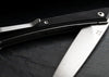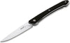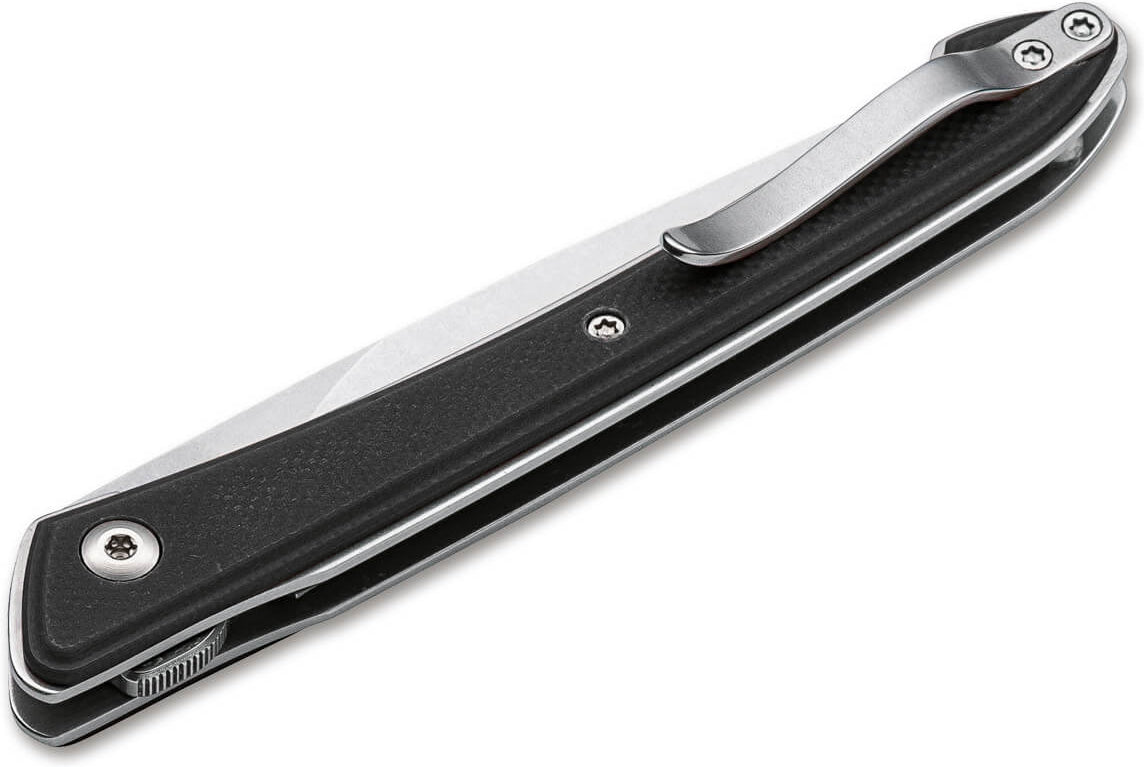 The almost delicate Boker Plus Urban Spillo is certainly one of the most compact gentleman's knives in our product range, slightly reminiscent of a modern steak knife. It has a flat-ground blade of VG-10 that opens with a flipper. Even though it extends just a little bit beyond the slim handle, the blade on ball bearings only needs a little pressure to open quickly and comfortably. The black handle of textured G10 encases the sturdy linerlock. With a detachable clip (tip-up) and high-quality nylon case for storage.