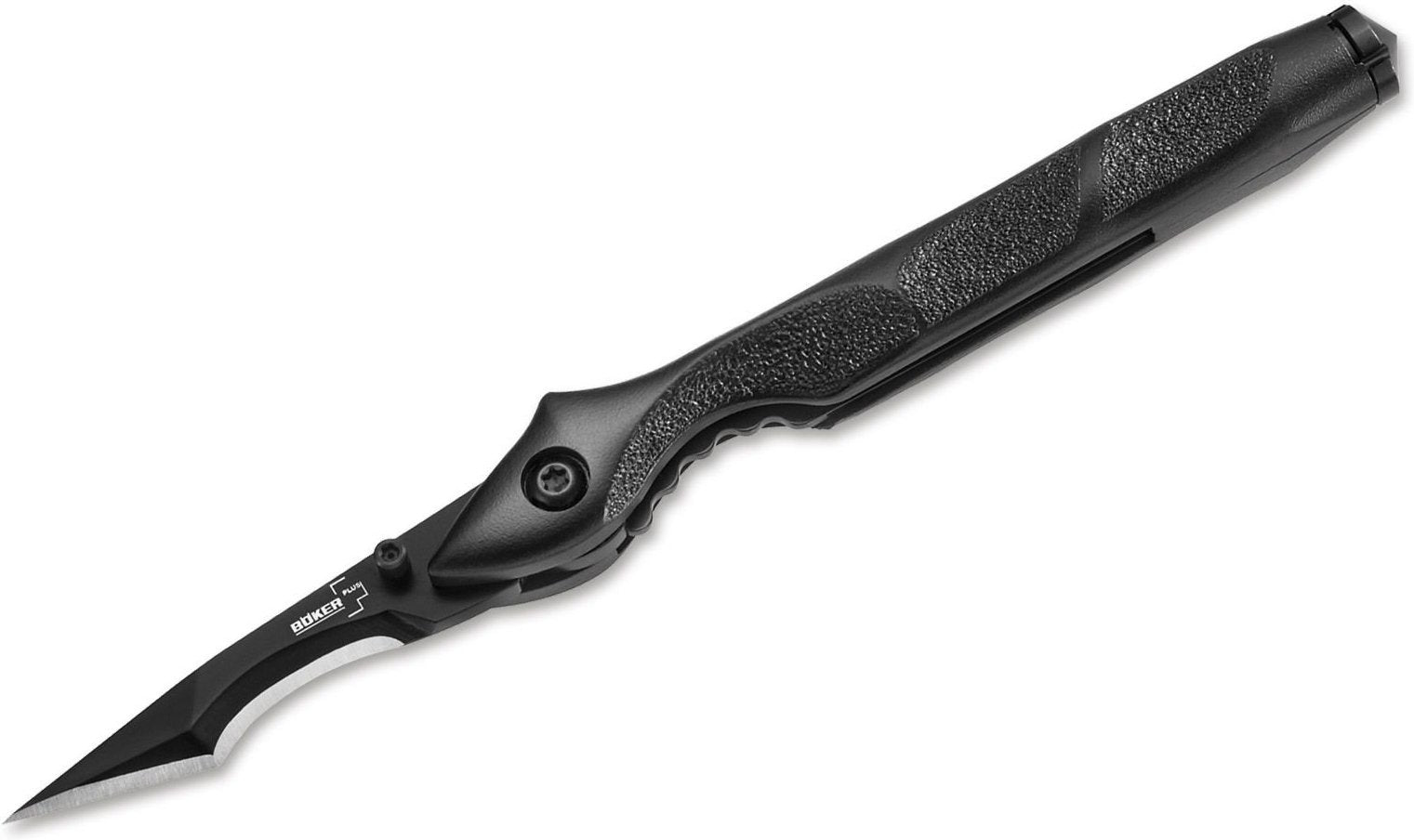 The Boker Plus Urban Survival is an extraordinary design by Jim Wagner. With a total length of 14.4 centimeters and a blade length of 4 centimeters, the pocket knife has compact dimensions and excellent carrying comfort. The sleek construction and 440C scalpel blade provide maximum control. The scales are made of black aluminum, a tough metal, which is very light and at the same time has a high strength. The interchangeable glass breaker completes the equipment of this unusual tool. With pocket clip and screwed thumb stud.