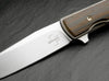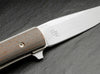 With a blade of only 7 cm, the smallest version of the Urban Trapper, the Petite, has become a good deal more compact and lighter and its version with dual Cocobolo scales now weighs only 33 grams! But the Urban Trapper Petite comes with the same high-quality equipment: a VG-10 blade satined longitudinally, titanium frame lock with ball bearing and reversible titanium clip (tip-up). This way, the Urban Trapper Petite opens a new dimension of gentlemen's folding knives. With high-quality nylon case for storage.