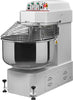 This European heavy-duty dough spiral mixer is made of stainless steel. It features fixed, stainless steel, high-strength spirals as well as a safety device which stops the machine when the bowl cover is lifted. The bowl is also stainless steel. This machine will greatly reduce the usual mixing time vs. traditional machines. Ideal for bakeries and pizza shops, this mixer performs well with both hard and soft dough. This heavy-duty spiral machine has a fixed basin made of stainless steel and includes a rear basin guard. This model is equipped with two kneading speeds, two timers to program the working cycle and contain two fixed wheels and adjustable feet for easy positioning.