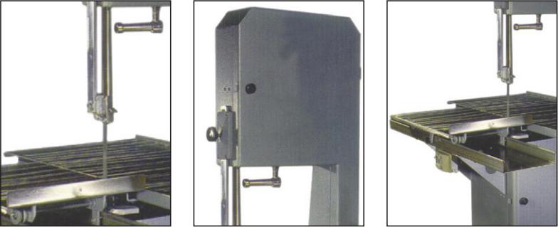 Fabricated in steel with electrostatic oven paint, this saw comes complete with an aluminum head. Its stainless steel table has a four-wheel base that slides on rails. It is equipped with adjustable legs. Easy to disassemble for quick cleaning and maintenance. For heavy and industrial use - perfect for slaughterhouses and farms.