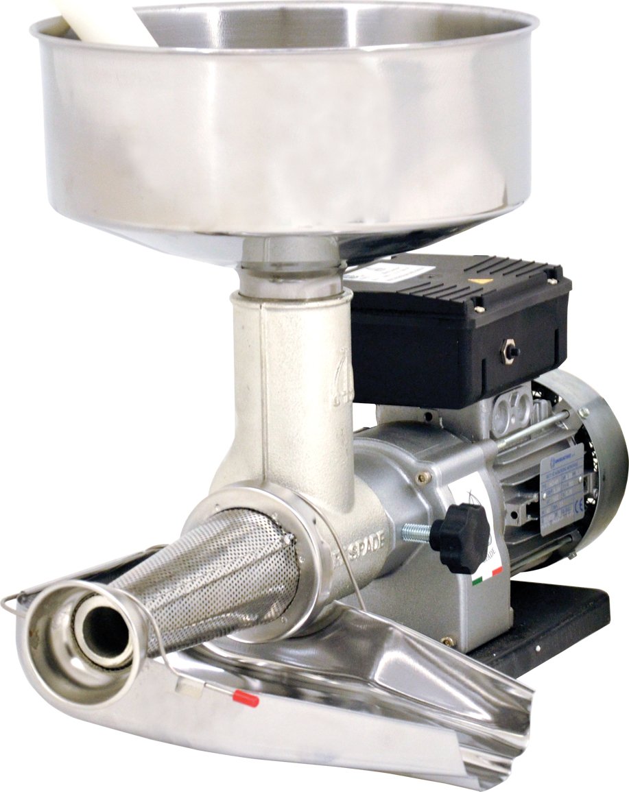 This tomato squeezer enables the extraction of large quantities of tomato puree, separating it from seeds and skin. With its high power 0.40 HP motor, the TS-IT-0150 is ideal for those who require performance for medium to large production. The hopper, collector, and base are stainless steel; the worm and body are cast iron with double hot tinning, making this model a breeze to clean and sturdy to last during continuous usage. This model is also easy to disassemble, adding more effectiveness when cleaning. This unit conforms to CSA standards.