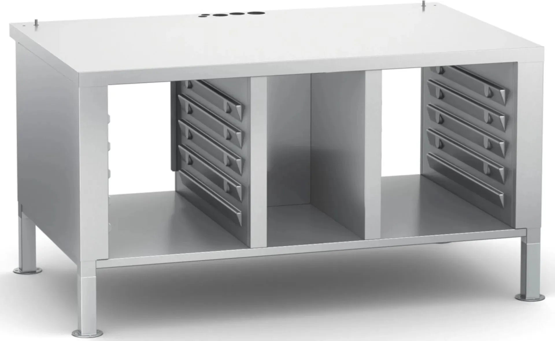 The Rational MarineLine Stand is built for durability and stability in demanding marine and offshore kitchen environments. Designed for Rational size 2-XS units, it provides a secure and practical foundation with ten pairs of 1/1 GN support rails for convenient pan storage and organization. Its sturdy stainless steel construction, flanged feet for anchoring, and open rear design make it ideal for professional galley setups requiring reliable performance in motion-sensitive environments.