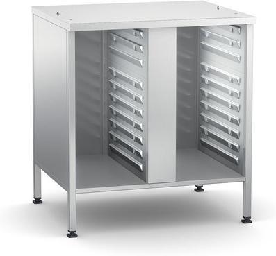 The Rational Stand III UltraVent® stationary oven stand is purpose-built for use with UltraVent® systems and Rational iCombi Classic/Pro ovens (6-half size). Standing taller than standard stands, it provides an ergonomic working height and the perfect base for ovens with integrated venting solutions. With 20 supporting rails, it offers generous pan storage capacity, while side, top, and rear panels provide stability and durability. Its stainless steel construction ensures long-lasting reliability in demanding commercial kitchens.