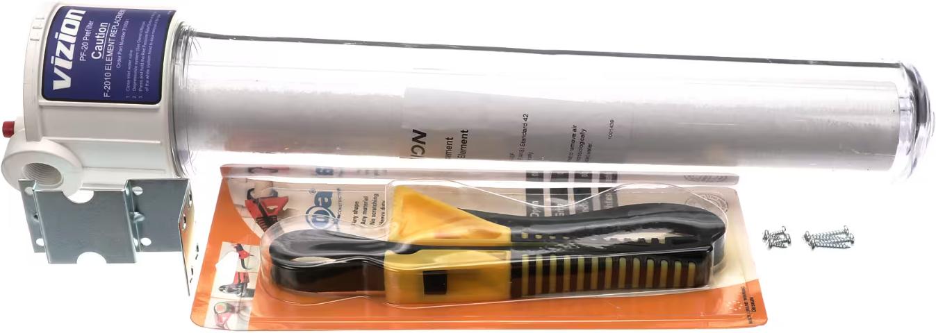 - Complete System: Includes the prefilter cartridge, housing, mounting bracket, and filter wrench.