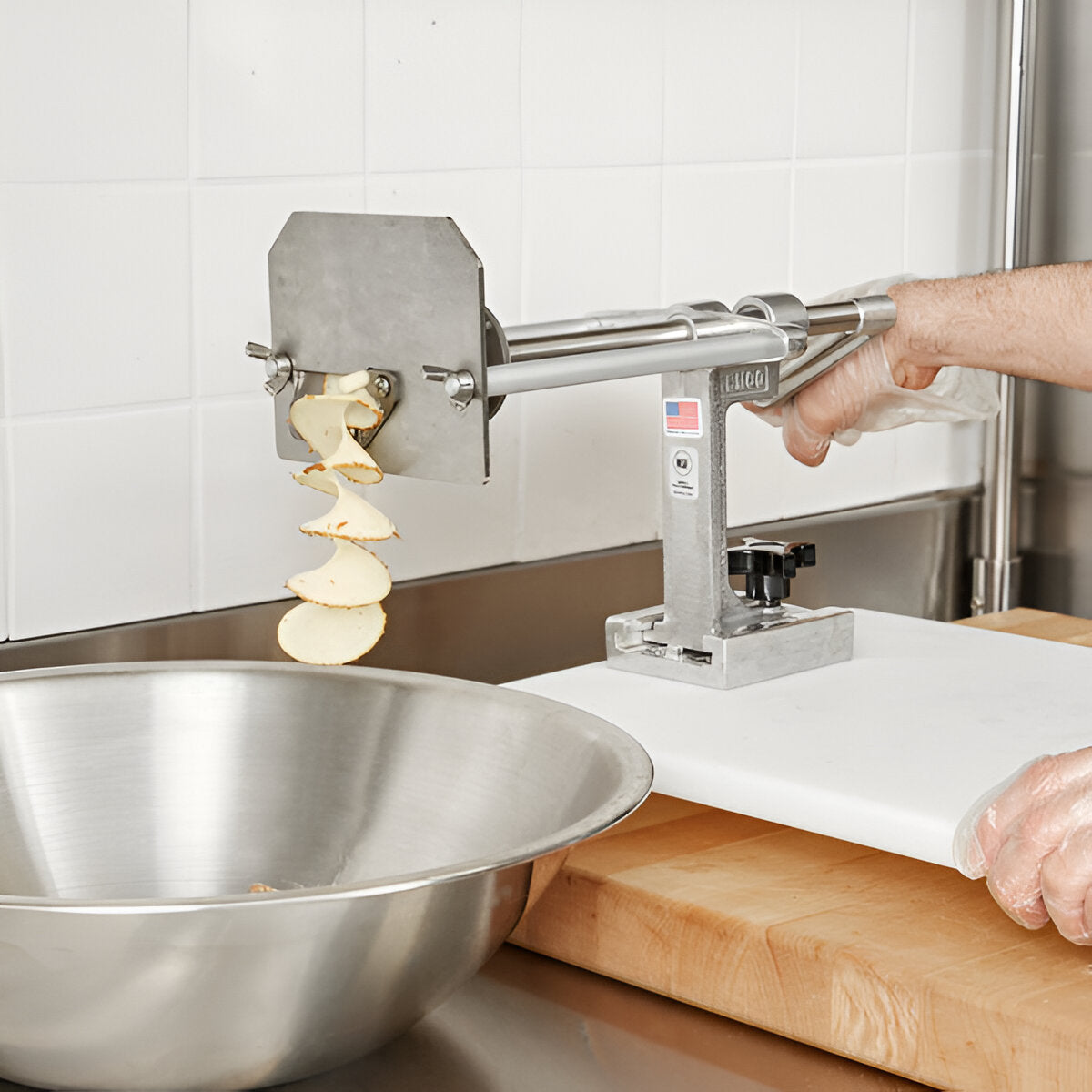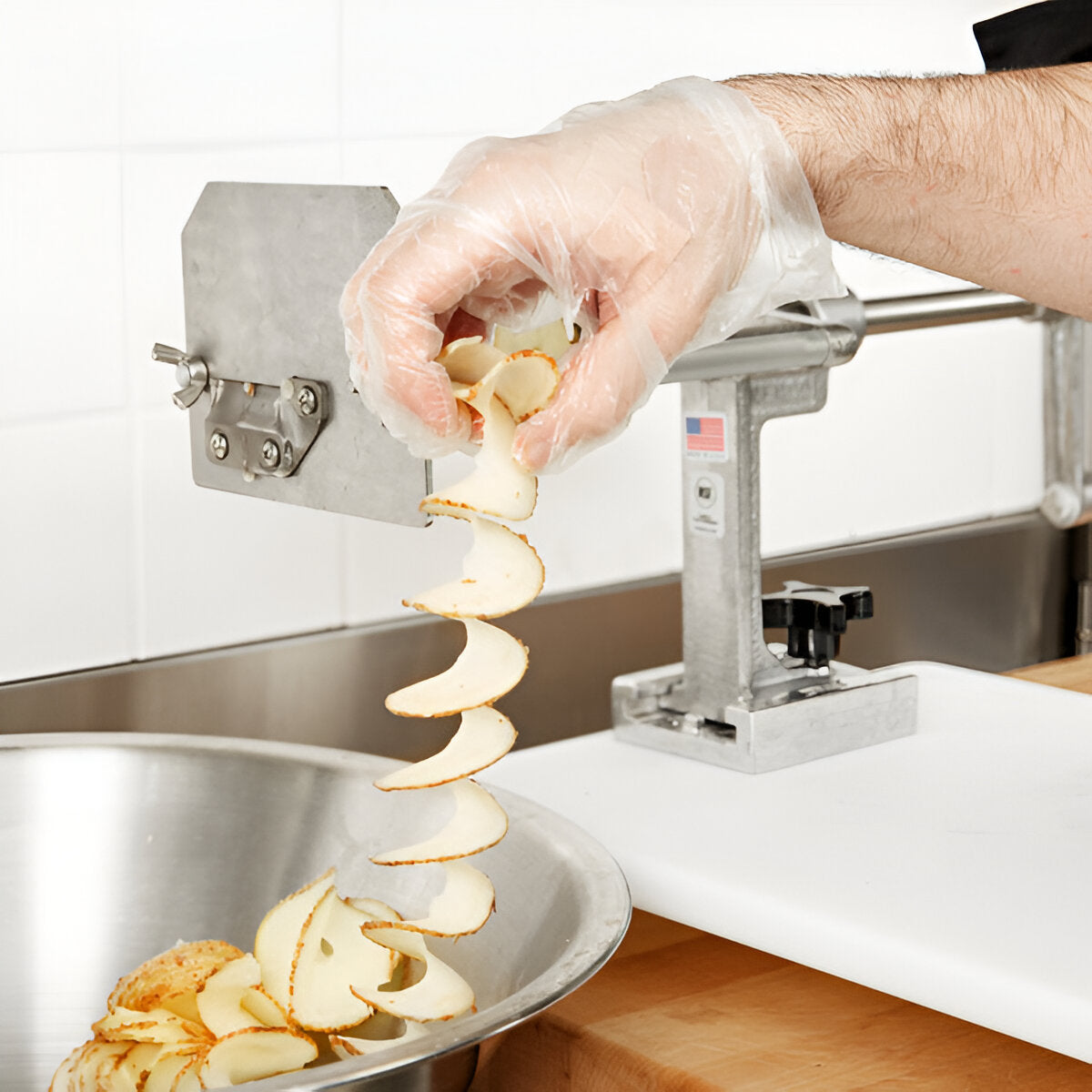 - Versatile Application: Ideal for cutting potatoes, sweet potatoes, and other firm vegetables into spiral ribbon fries.