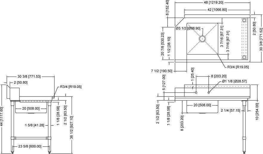 Keep your dishes organized with this soiled dish table with sink. This unit is constructed with 18 gauge stainless steel and is designed to withstand every-day operation. This dirty dish table provides your dishwashing station with an appropriate place to stock your dirty dishes before they go through the wash cycle. Perfect for restaurants, cafes, and hotels!