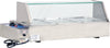 This bain marie is constructed with high-quality stainless steel and provides high-efficiency performance. It features a thermostat, a glass sneeze guard, clear lids, and pans. Can accommodate full-size pans in lieu of two half-size pans. This unit is ideal for restaurants, hotels, banquet halls, and cafeterias.
