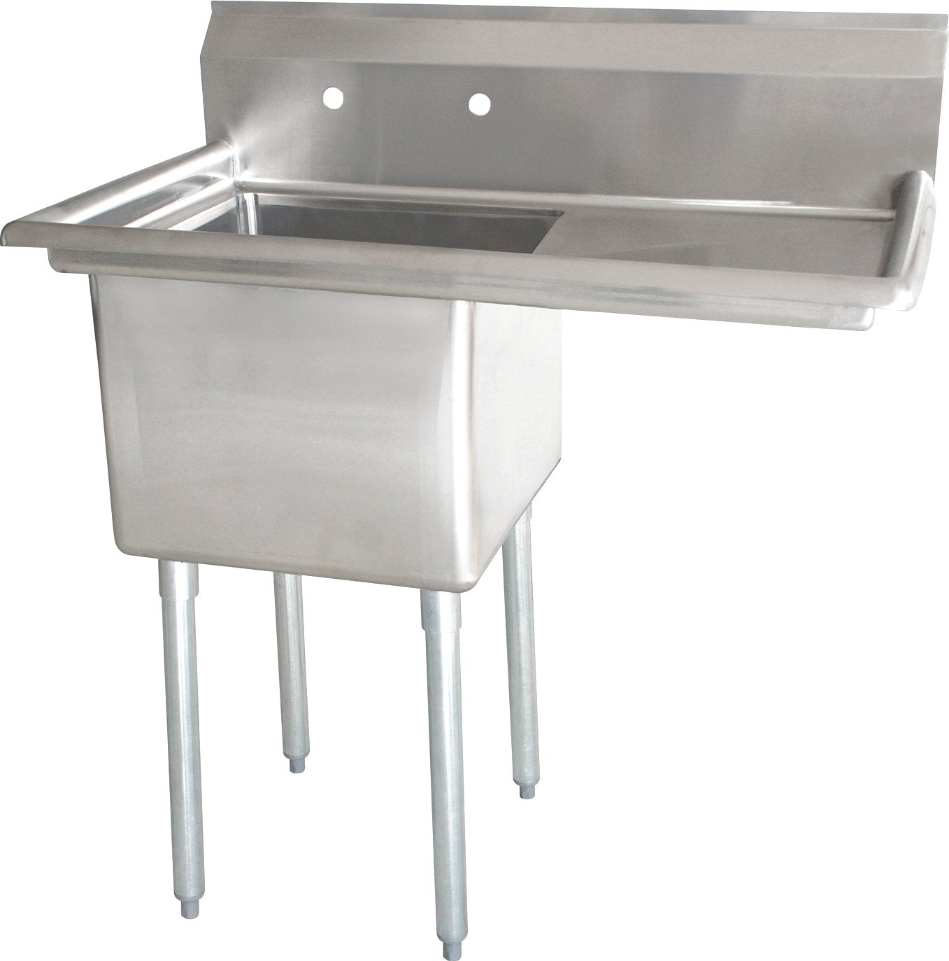 This 18-gauge stainless steel one compartment prep/utility sink is perfect for warewashing duties in the busiest of restaurants. Nice and deep for easy cleaning of pots and pans. This heavy duty one compartment pot sink also features a rolled rim edge and drain guards.
