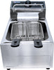 This countertop electrical deep fryer is ideal for small to medium applications. The body is made of stainless steel to allow easy cleaning. It is equipped with a limit switch to prevent overheating. This fryer is controlled by a thermostat and the operating temperatures range from 50°-190°C / 122°-374°F. Fryer baskets are included.