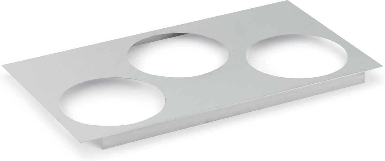 Optimize your kitchen setup with the Randell 6.5" Stainless Steel Adaptor Plate, featuring two precisely cut 6.5" openings. Crafted from premium stainless steel, this durable adaptor plate is designed to withstand the rigors of a busy commercial kitchen, providing a secure and stable solution for keeping various containers organized and accessible. Ideal for steam tables, this adaptor plate is a reliable addition to any professional kitchen, making it easy to switch between different sizes of pots and pans without compromising space or efficiency.