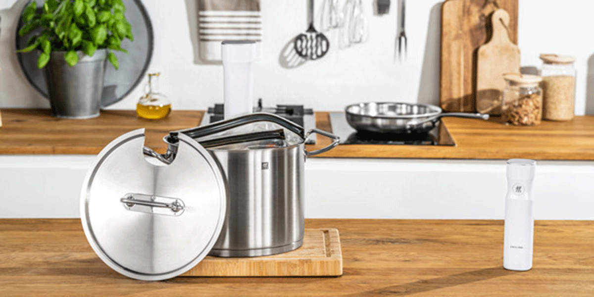 The ZWILLING Pro Small sous-vide lid is the perfect addition to your ZWILLING ENFINIGY sous-vide stick. The specially developed lid has a recess that is precisely tailored to the size of the sous-vide stick. You can now also cook sous-vide with the lid closed. This reduces energy consumption by up to 50%, as less heat and water vapour escapes and the stick does not need to be reheated as often. This is not only easy on the wallet and the environment, but also the sous-vide stick itself, as it is less stressed thanks to the reduced number of heating cycles. Less water evaporates, which is particularly relevant if you have cooking times of several hours. The water must not fall below the minimum water level of the sous-vide stick during vacuum cooking. The lid removes the need to refill water. The sous-vide pot lid with satin finish is not only made of 18/10 stainless steel, dishwasher-safe and therefore particularly easy to clean, but also multifunctional: Thanks to the silicone insert supplied, the recess can be closed easily and the pot lid with recess can be used for every 24 cm diameter stock pot.