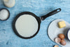 Make restaurant-quality crepes in your own kitchen. The 24 cm (9.5”) nonstick crepe pan is ideal for making small omelets, crepes, or French toast, and to use as a miniature griddle. It features a sloping rear wall for easy flipping, folding, and serving. Delicate breakfast treats will slide right off the patented nonstick coating, and the heavy-cast aluminum construction distributes heat evenly and will never warp. Used by discerning home chefs around the world, Swiss Diamond’s PFOA-free cookware features unsurpassed nonstick performance for healthy cooking and easy clean-up.