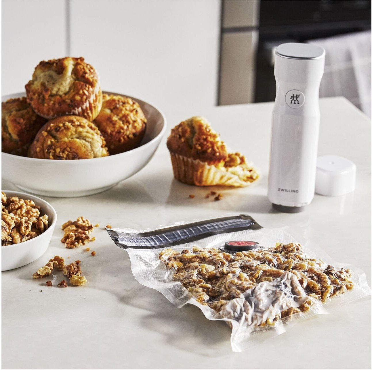 We currently offer two starter sets available with a vacuum pump, reusable BPA-free bags that are easy to close with a zipper attachment and are ideal for sous-vide cooking and microwave reheating, and either borosilicate glass or BPA-free polypropylene plastic containers. With the ZWILLING double sealing effect (most others only seal one surface) the containers shut tightly for super-fresh food. What’s more? The downloadable Culinary World app will track when you store food and when it will spoil, helping you to reduce food waste and save money. For a smart way to store food, choose Fresh & Save.