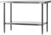 Designed for practicality and organization, this worktable includes a stainless steel adjustable bottom shelf. This provides additional storage space, allowing you to keep essential tools, ingredients, or equipment within reach, enhancing efficiency in your kitchen. The longitudinal reinforcements under the work surface contribute to the table's overall strength, providing additional support and stability.