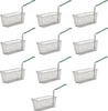 This deep fryer basket is specifically designed for heavy-duty commercial applications. It is made from nickel-plated iron for long-lasting strength. The handle is wrapped with heat-resistant plastic for protection. The basket comes with an integrated hook for easy draining and storage.