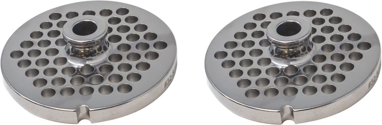 Omcan - #32 European-Style (8 mm) Stainless Steel Meat Grinder Plate with Hub, Pack of 2 - 11209