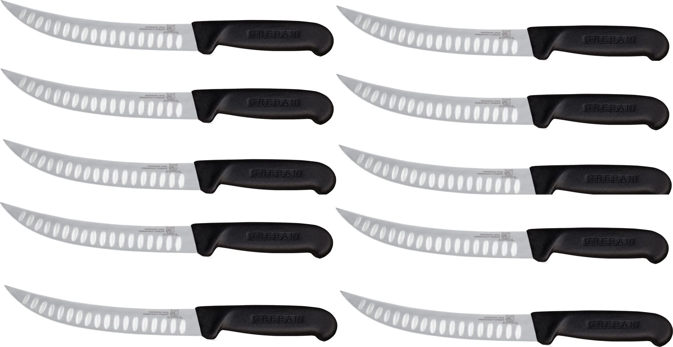 This Greban knife is made of premium quality stainless steel. Trimming knives are excellent for breaking apart cured ham, as well as other meats. The curved blade allows the knife to slide into the meat with ease. It is also designed for removing fat from various cuts of meat.