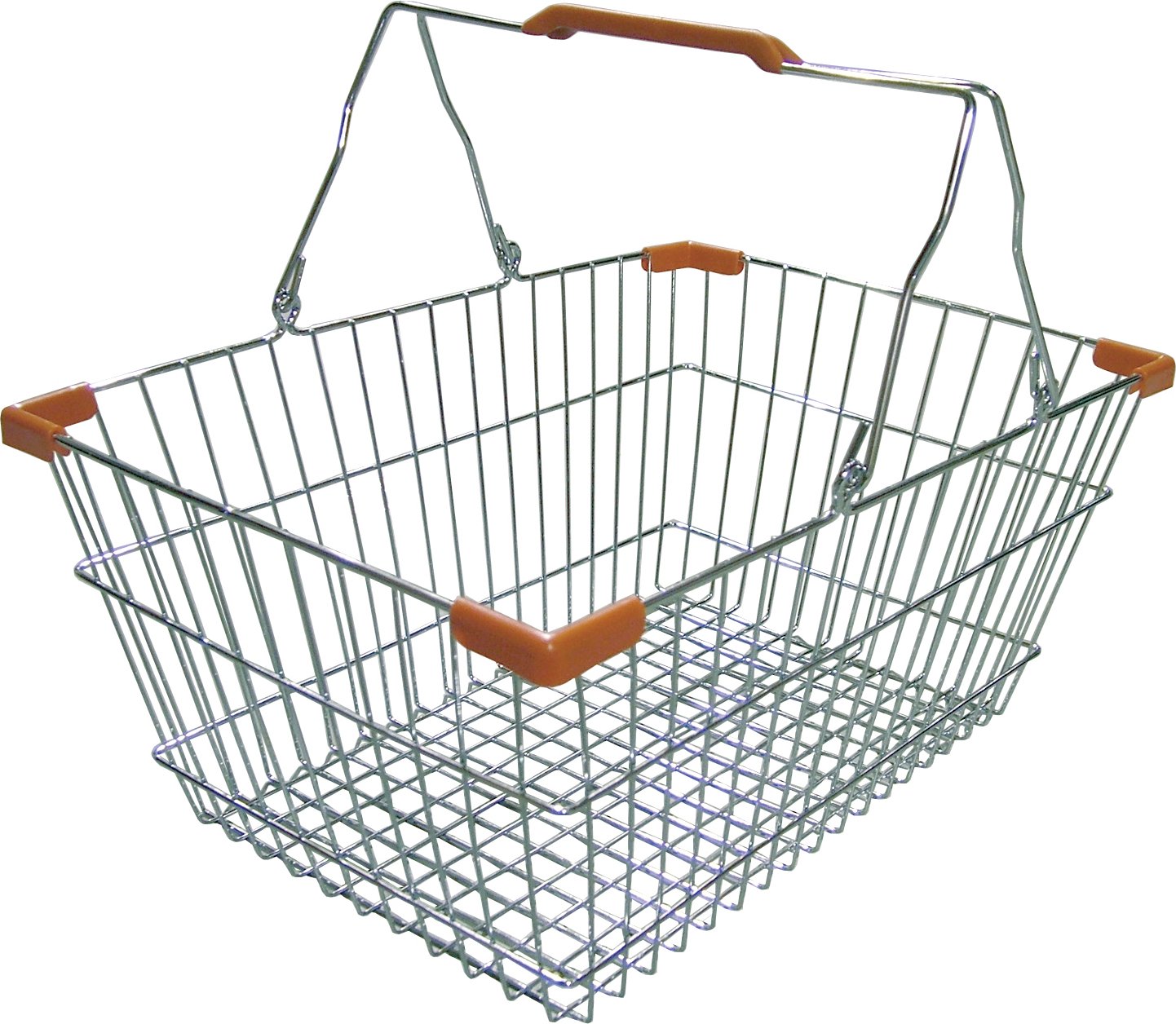Provide your customers with optimal shopping convenience with this shopping basket! Made of durable chrome, this basket is built to last through vigorous, multiple daily uses. The holes in the basket prevent any spill or water build-up. This basket features two chrome handles that offer even more sturdiness and support. Plus, each handle has a grip for your customers' comfort while holding the shopping basket. These baskets also nest together for easy, space-efficient storage.