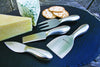 Set includes: magnetic knife block, cheese wedge knife, cheese knife and serving fork.