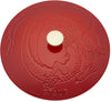 - Design: Cherry red braiser with an intricate dragon design on the lid and a brass knob.