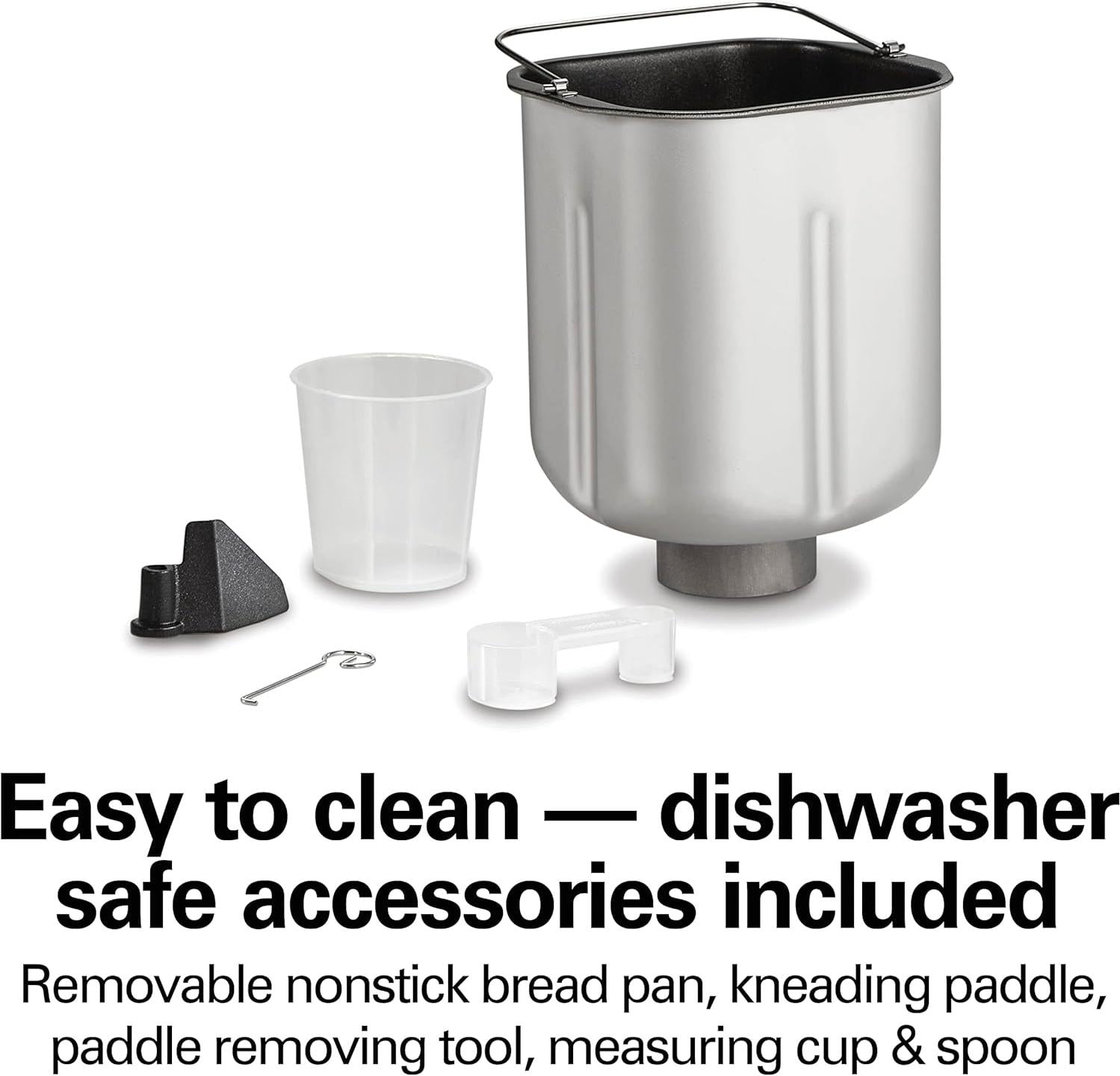 - Dishwasher-Safe Components: The nonstick bread pan, kneading paddle, paddle removing tool, measuring cup, and spoon are all dishwasher safe, ensuring easy cleanup.