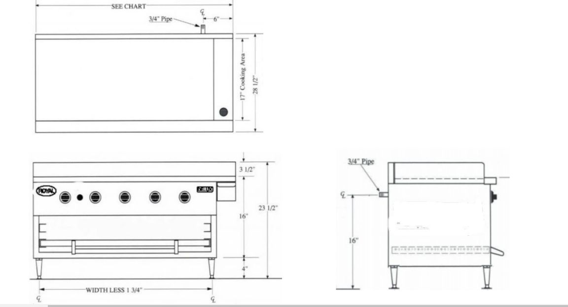 The "Royal - Deluxe 24" Stainless Steel Manual Griddle With Over Fried Broiler" is truly a culinary marvel, destined to elevate your cooking endeavors to new heights. Crafted with a meticulously designed set of features, this kitchen dynamo meets the highest standards of performance and durability. Its fully welded frame, backed by a lifetime warranty, ensures that your investment is protected, offering years of reliable service. With exceptional 1,200°F mineral wool insulation, this appliance maintains high temperatures for efficient cooking while keeping the exterior safe to the touch. Its sleek stainless steel design not only enhances the overall aesthetic in your kitchen but also contributes to the griddle and broiler's sturdiness.