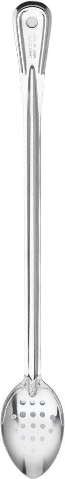 The Browne 21" Extra-Long Handled Perforated Serving Spoon is your essential serving companion for those special occasions when your culinary creations deserve to be presented with grace and precision. Meticulously designed for both professional and home use, this serving spoon adds an extra touch of sophistication to your dining experience.